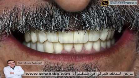 مراجع سوري من مدينه السويداء يعيش في امريكا راجعا في اسطنبول من اجل تبديل تركيبات الاسنان التي كان قد وضعها فوق زراعات اسنان تم زراعتها في احدى الدول والتي لم تنال اعجابه.