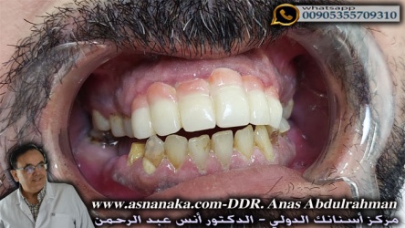 راجعني شاب من الأردن يعاني من عضة مفتوحة كان قد ركب تركيبات أسنان في الأردن ولكن لم تكن على هذا المستوى من الأتقان كما ستشاهدون في الصور اللاحقة