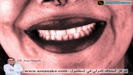 زراعة زرعات أسنان لمراجعة عراقية كانت تعاني من التهابات في اللثة لذلك أختارة الزرعات السويسرية من شركة tbr التي تحافظ على اللثة من اللتهابات ورائحة الفم الكريهة والسر في ذلك هو وجود حلقة زيركونية متفاعلة حيوياً مع اللثة والتي تمنع اللتهابات وقد تم زراعة هذه الزرعات ال 6 بدون شق جراحي وبدون أي آلم وبعد اربعة أشهر عادت وركبت الأسنان المماثلة تماماً للون وشكل الأسنان الجانبية كما ستشاهدون في الصور التالية