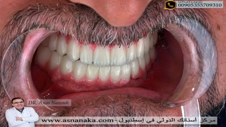 مراجع فلسطيني من عرب 48 راجعني من أجل زراعة كامل الفكين بعد أن فقدهم بسبب التهابات اللثة وقد بحث كثير عن سعر رخيص ولكن ممتاز لزرعات الأسنان عله يجد ذلك في الأنترنت في البداية حصل على مركز أسنان بأسعار رخيصة في تركيا ولكن أكتشف قبل البدأ بالعلاج كما قال لي الكثير من التلاعب فرجع مرة أخرى وهو في تركيا وبحث بالأنترنت عن طبيب أخر والحمد لله أستدل علينا وشاهد طريقة التعامل الشفافة معه فقرر زراعة كامل الفكين