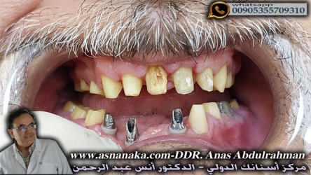 قاضي عراقي يعيش في \أنكلترى بحث كثيراً قبل أن يقرر أين يزرع أسنانه خاصة أنه كان يعاني من تهشم سابق في الفكين بسبب حادث مؤلم وقد أتصل بي عبر الواتس اب وأستشارني بعد أن أرسل صورة شعاعية للفكين وفيهم ظهر أنه وضع جبائر من التيتانيزم من أجل تثبيت الفكين والصعوبة الكبيرة هي تلافي هذه الجبائر المعدنية عند زراعة الأسنان وقد تم بخبرتنا الطويلة في هذا المجال من وضع زرعات أسنان في مكان محايد تماماً بحيث لم تعترض أي برغي أو دعائم والحمد لله تم نجاح كل الزرعات وتم تركيب الأسنان الزيركونيه فوقهم في الزيارة الثانية وكما ستشاهدون في الصور اللاحقة حصل على أبتسامة جميلة جداً بعد تركيب تركيبات الزيركون فوق الزرعات وفوق الأسنان الباقية وفي نهاية الموضوع ستستمعون لتجربة المراجع العلاجية الناجحة التي قام بها في مركز أسنانك الدولي بيد الدكتور أنس عبد الرحمن