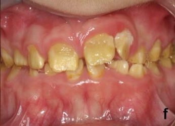 وينتج عنه تضائل في طبقة المينا فتصبح الأسنان حساسة جدا وذلك بسبب انكشاف الطبقة الداخلية للسن (العاج) حيث يتغير اللون ويصبح مائلا إلى الاصفرار وتكون الأسنان أكثر عرضة للتصبغات الخارجية وتكون أيضا صغيرة الحجم مع وجود فراغات بين الأسنان.