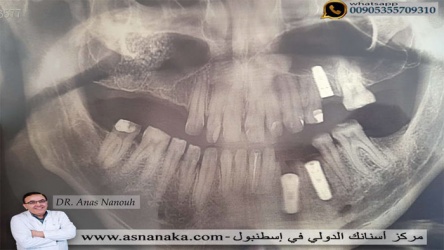 صورة شعاعية لزرعات الأسنان المراجع بعد قلع وزراعة الأسنان
