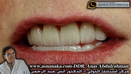 صور نهائيه لتركيبات الاسنان المصنوعه من الزيركون مع وجه تجميلي من الإماكس ومع حد قاطع من الكريستال الذي يعطي للاسنان الشكل الطبيعي تماما كما تشاهدون في الصور الملحقه