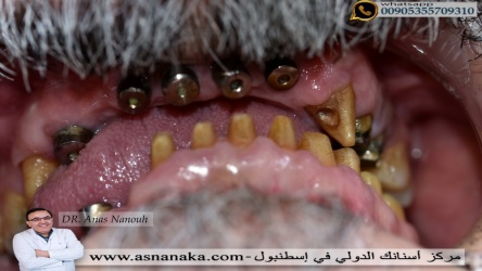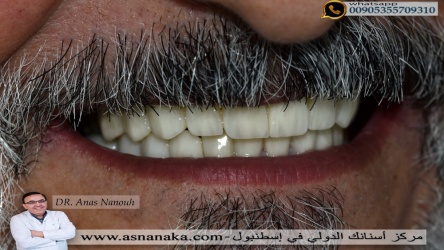 مراجع سوري من مدينه السويداء يعيش في امريكا راجعا في اسطنبول من اجل تبديل تركيبات الاسنان التي كان قد وضعها فوق زراعات اسنان تم زراعتها في احدى الدول والتي لم تنال اعجابه.