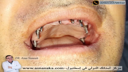 زراعة 16 زرعة بدون شق جراحي في كلا الفكين مع تركيب أبتسامة هوليود لمراجع من كندا