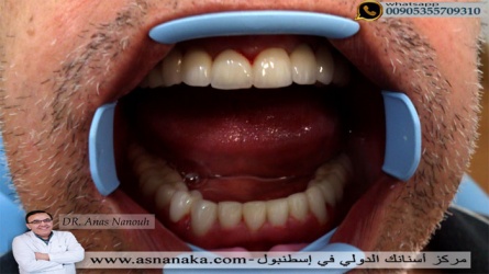 مراجع عراقي يعيش في امريكا منذ فتره طويله راجعني من حوالي 12 سنه من اجل غرس الاسنان وتركيب الاسنان في كلا الفكين وقد تم ذلك في تلك الايام ولكن بعد 12 سنه تغيرت امور كثيره و قد رغب بتغير الجميع من اجل الحصول على ابتسامه جديده وخاصة ان احد الاسنان قد تكسر بسبب صدمه قوية عليه من الملاحظ هنا ان تركيبات الاسنان الزيركون لا شك انها اختلفت منذ 12 سنه الى الان واختلف التقنيه التصنيع والجماليه ستشاهدون هذا في الصور التاليه التي تمت منذ 12 سنه وبعد تركيب التركيبات كما ستلاحظون ان الغرسات السويسريه الفرنسيه TBR التي تم غرسها منذ 12 سنه لم تتراجع عنها اللثه والى الان تبدو كانها غرست منذ عده ايام وهذا نصر كبير لهذه النوعيه من الغرسات التي اكدت عليها في اكثر من مناسبه بامكانكم مشاهده الفيلم الخاص بهذه النوعيه من الغرسات في نهايه الموضوع