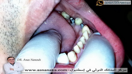فم المراجع بعد اربعه اشهر من زراعه الأسنان وقبل البدء بأخذ المقاسات النهائيه