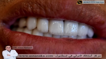 تركيب إبتسامه هوليود فوقه الأسنان الطبيعيه الباقية وفوق الزرعات والحصول على ابتسامه رائعه بعد تركيب تركيبات الزيركون مع وجه تجميلي من الإيماكس وحواف كريستالية