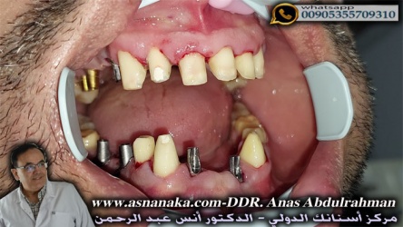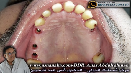 تحضير الاسنان وتركيب مشكلات اللثة فوق الزرعات التي تم زراعتها منذ اربعه اشهر