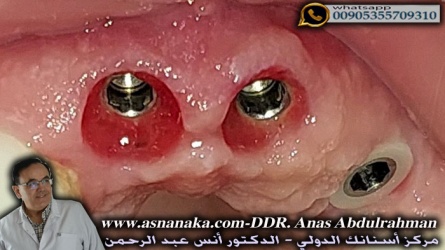 لثة المراجع التي تحيط بالزرعات لاحظ كيف تلتحم اللثة بشكل كامل حول الزرعات